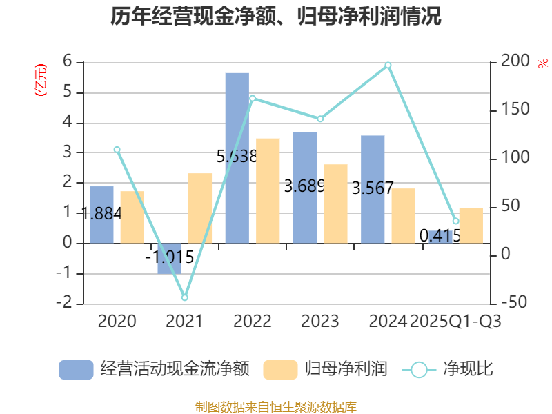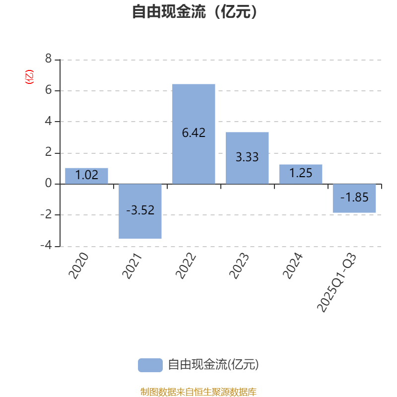 2025年前三季度,公司经营活动现金流净额为4146.38万元,同比下降72.72%;筹资活动现金流净额4256.55万元,同比增加8393.25万元;投资活动现金流净额-1.72亿元,上年同期为-4.21亿元。