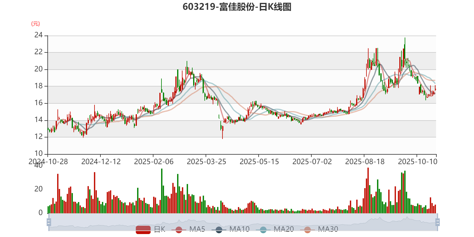 中证智能财讯富佳股份(603219)10月28日披露2025年第三季度报告。前三季度公司实现营业总收入22.91亿元,同比增长23.29%;归母净利润1.17亿元,同比下降19.19%;扣非净利润9625.08万元,同比下降29.63%;经营活动产生的现金流量净额为4146.38万元,同比下降72.72%;报告期内,富佳股份基本每股收益为0.21元,加权平均净资产收益率为7.35%。