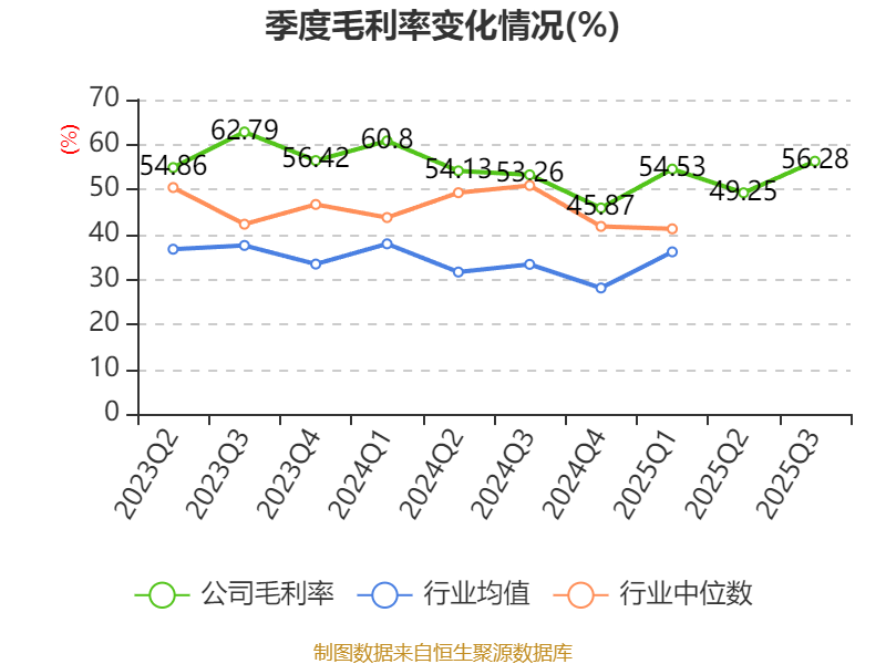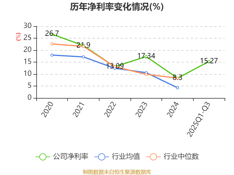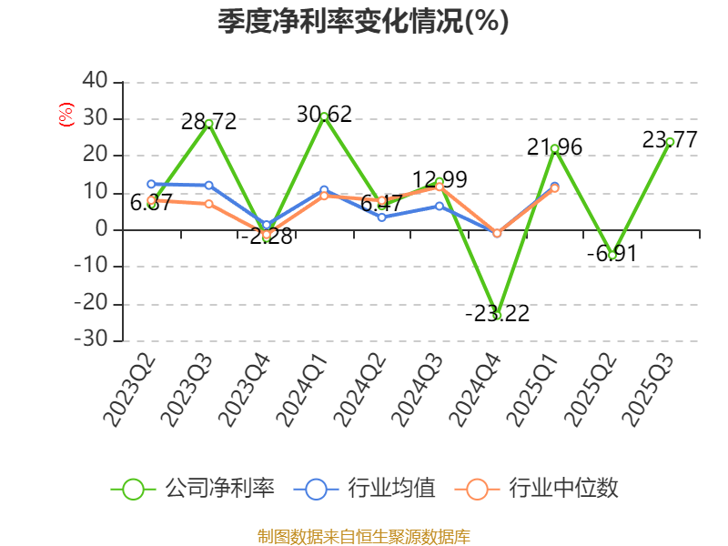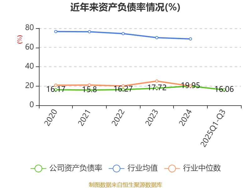 2025年前三季度,公司流动比率为3.44,速动比率为3.09。