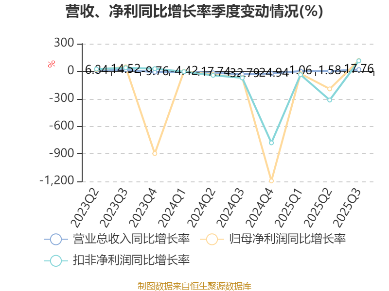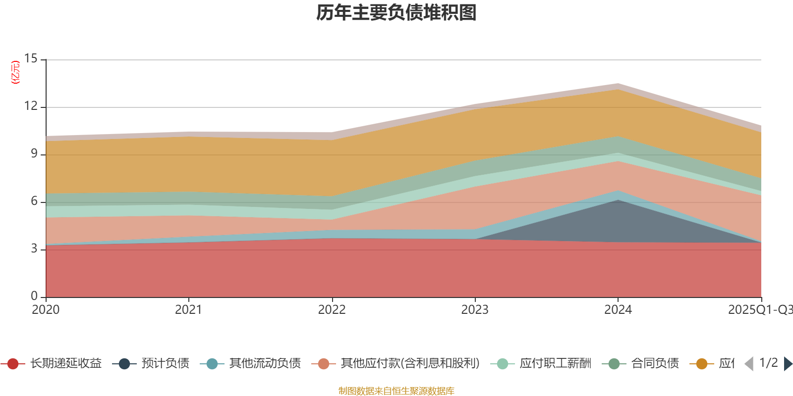 负债重大变化方面,截至2025年三季度末,公司预计负债较上年末减少99.25%,占公司总资产比重下降3.94个百分点;其他应付款(含利息和股利)较上年末增加56.61%,占公司总资产比重上升1.57个百分点;其他流动负债较上年末减少86.92%,占公司总资产比重下降0.76个百分点;应付职工薪酬较上年末减少48.06%,占公司总资产比重下降0.37个百分点。