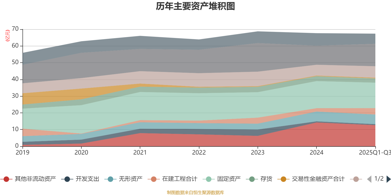 资产重大变化方面,截至2025年三季度末,公司货币资金较上年末增加18.04%,占公司总资产比重上升3.13个百分点;长期股权投资较上年末减少77.64%,占公司总资产比重下降3.12个百分点;在建工程合计较上年末增加89.56%,占公司总资产比重上升2.69个百分点;其他非流动资产较上年末减少11.18%,占公司总资产比重下降2.26个百分点。