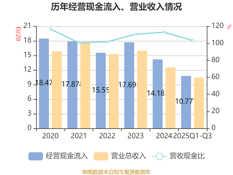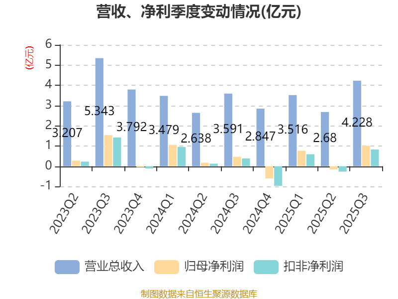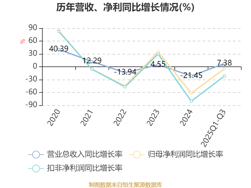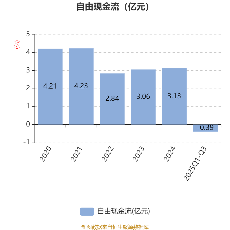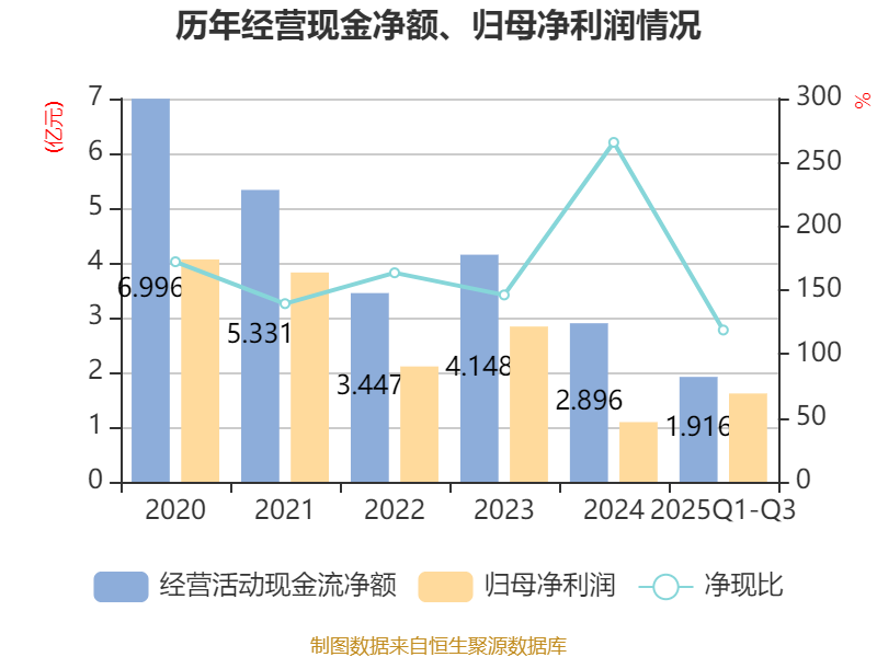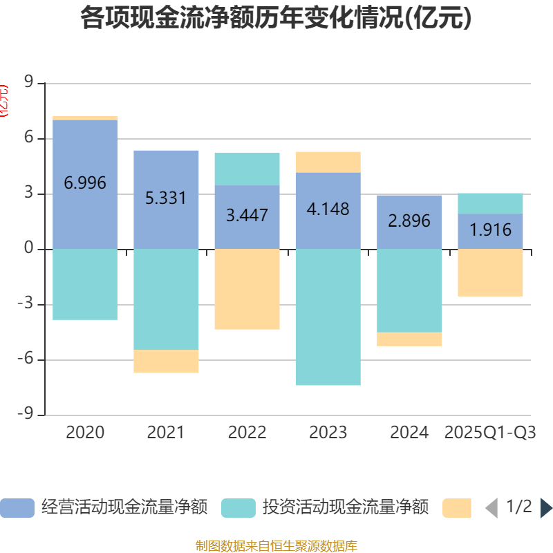 2025年前三季度,公司经营活动现金流净额为1.92亿元,同比下降9.3%;筹资活动现金流净额-2.58亿元,同比减少1.61亿元;投资活动现金流净额1.1亿元,上年同期为-2.98亿元。