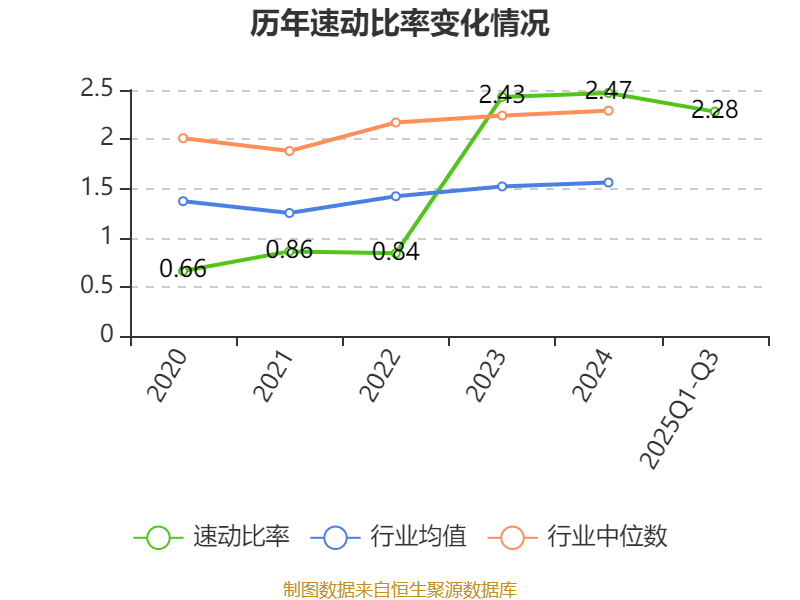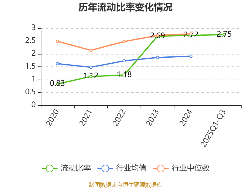2025年前三季度,公司流动比率为2.75,速动比率为2.28。