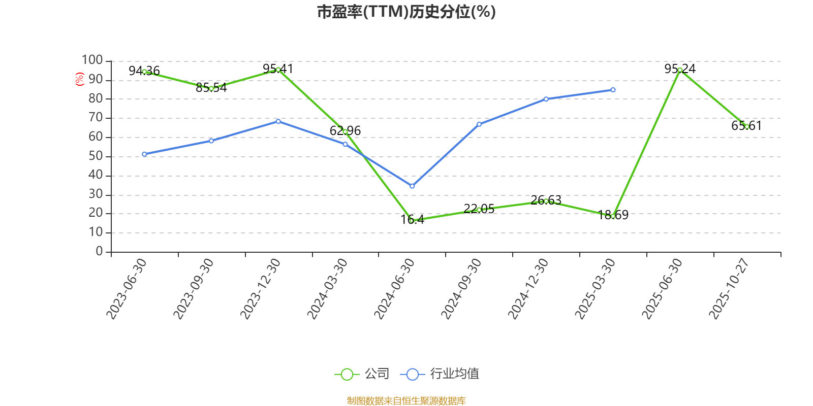 市盈率、市净率为负时,不显示当期分位数,会导致折线图中断。