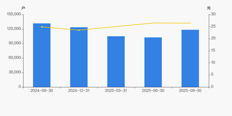 2024年9月30日至今,公司股东户数显著下降,区间跌幅为10.04%。2024年9月30日至2025年9月30日区间股价上涨6.27%。