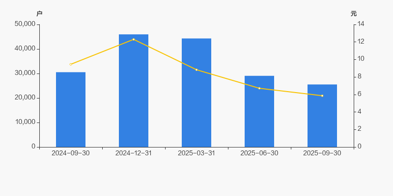 自2024年12月31日以来,公司股东户数连续3期下降,截至目前减幅为44.48%。2024年12月31日至2025年9月30日区间股价下降52.36%。