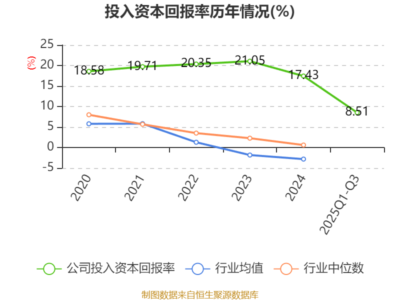 盈利能力方面, 2025年前三季度公司加权平均净资产收益率为9.85%,同比下降7.56个百分点。公司2025年前三季度投入资本回报率为8.51%,较上年同期下降6.53个百分点。