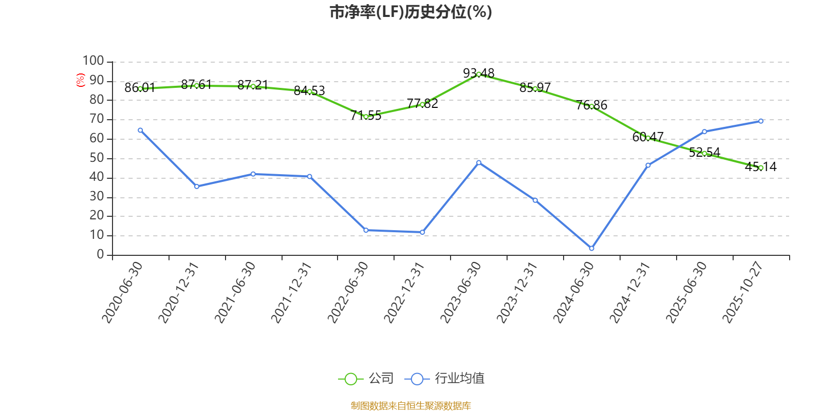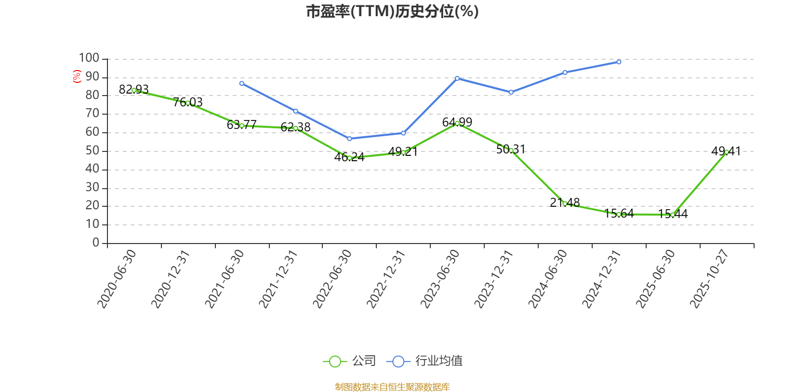 市盈率、市净率为负时,不显示当期分位数,会导致折线图中断。