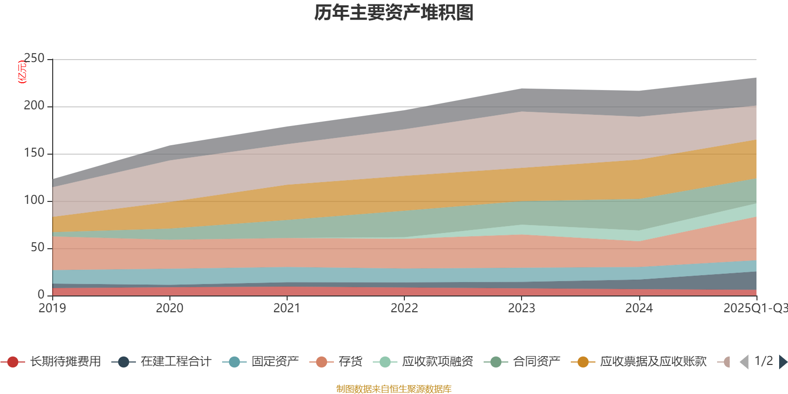 资产重大变化方面,截至2025年三季度末,公司存货较上年末增加68.94%,占公司总资产比重上升7.38个百分点;货币资金较上年末减少21.01%,占公司总资产比重下降5.43个百分点;合同资产较上年末减少20.65%,占公司总资产比重下降3.93个百分点;在建工程合计较上年末增加92.34%,占公司总资产比重上升3.76个百分点。