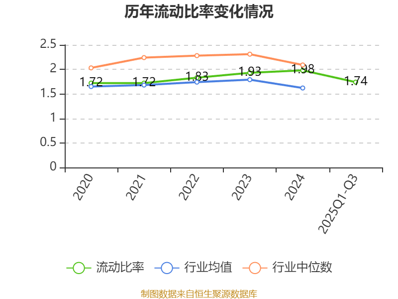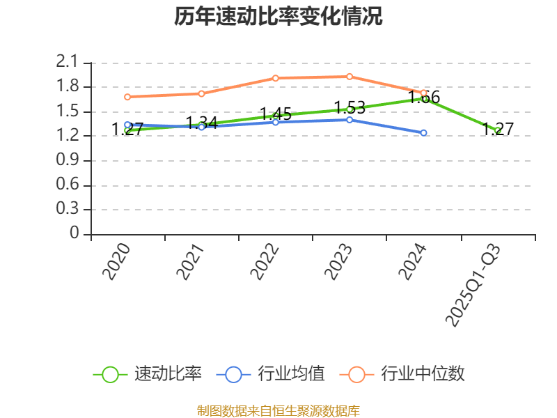 2025年前三季度,公司流动比率为1.74,速动比率为1.27。