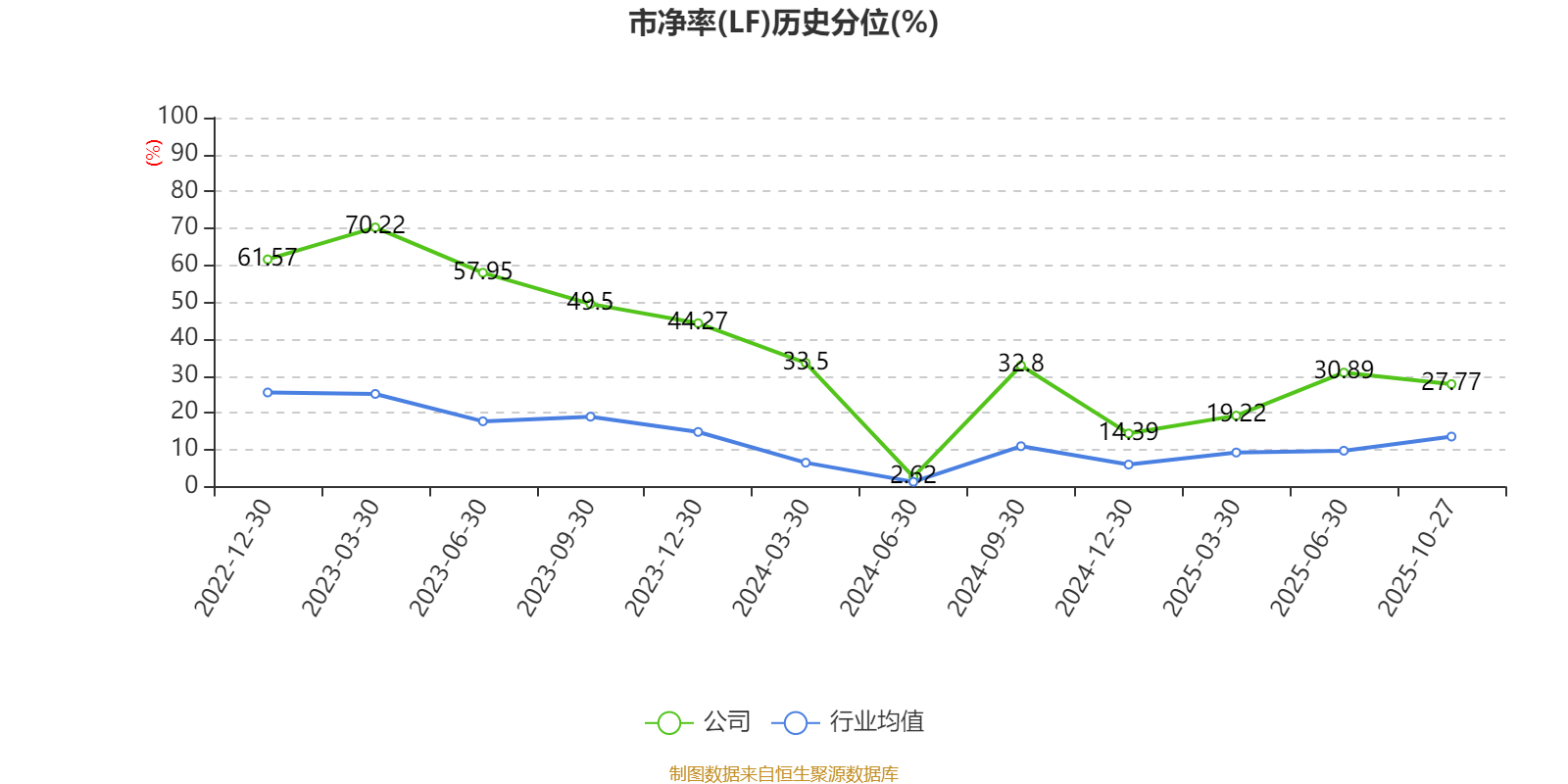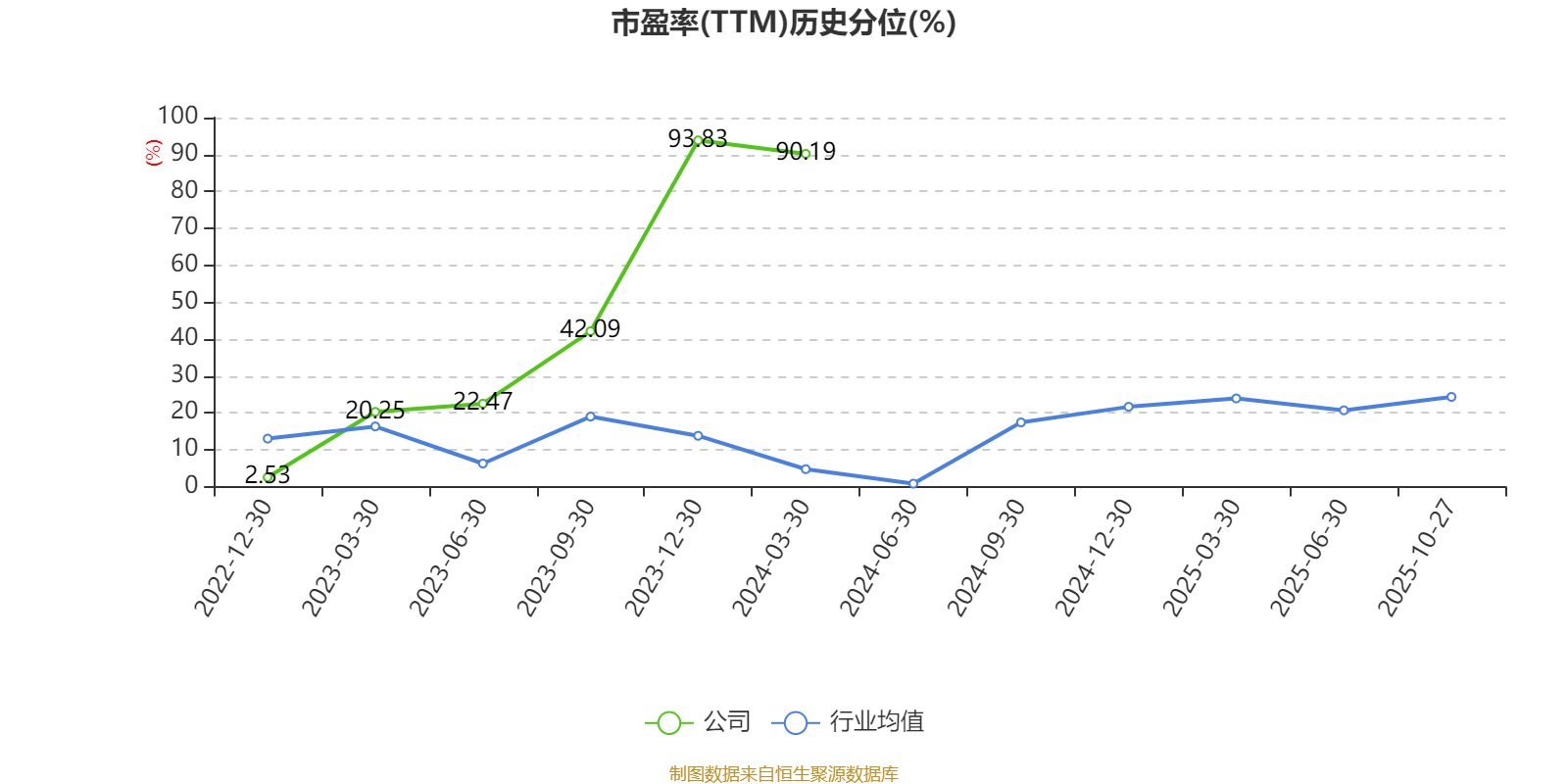 市盈率、市净率为负时,不显示当期分位数,会导致折线图中断。