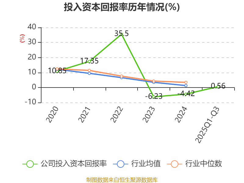 盈利能力方面, 2025年前三季度公司加权平均净资产收益率为-0.04%,同比上升2.27个百分点。公司2025年前三季度投入资本回报率为0.56%,较上年同期上升3.21个百分点。