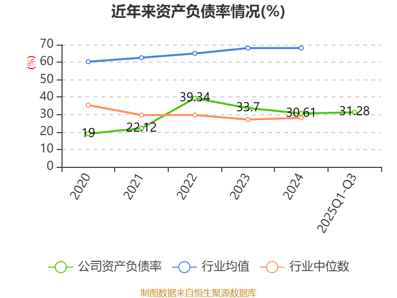 2025年前三季度,公司流动比率为3.08,速动比率为2.54。