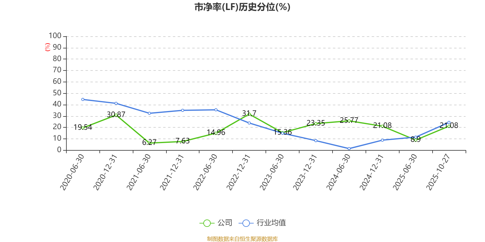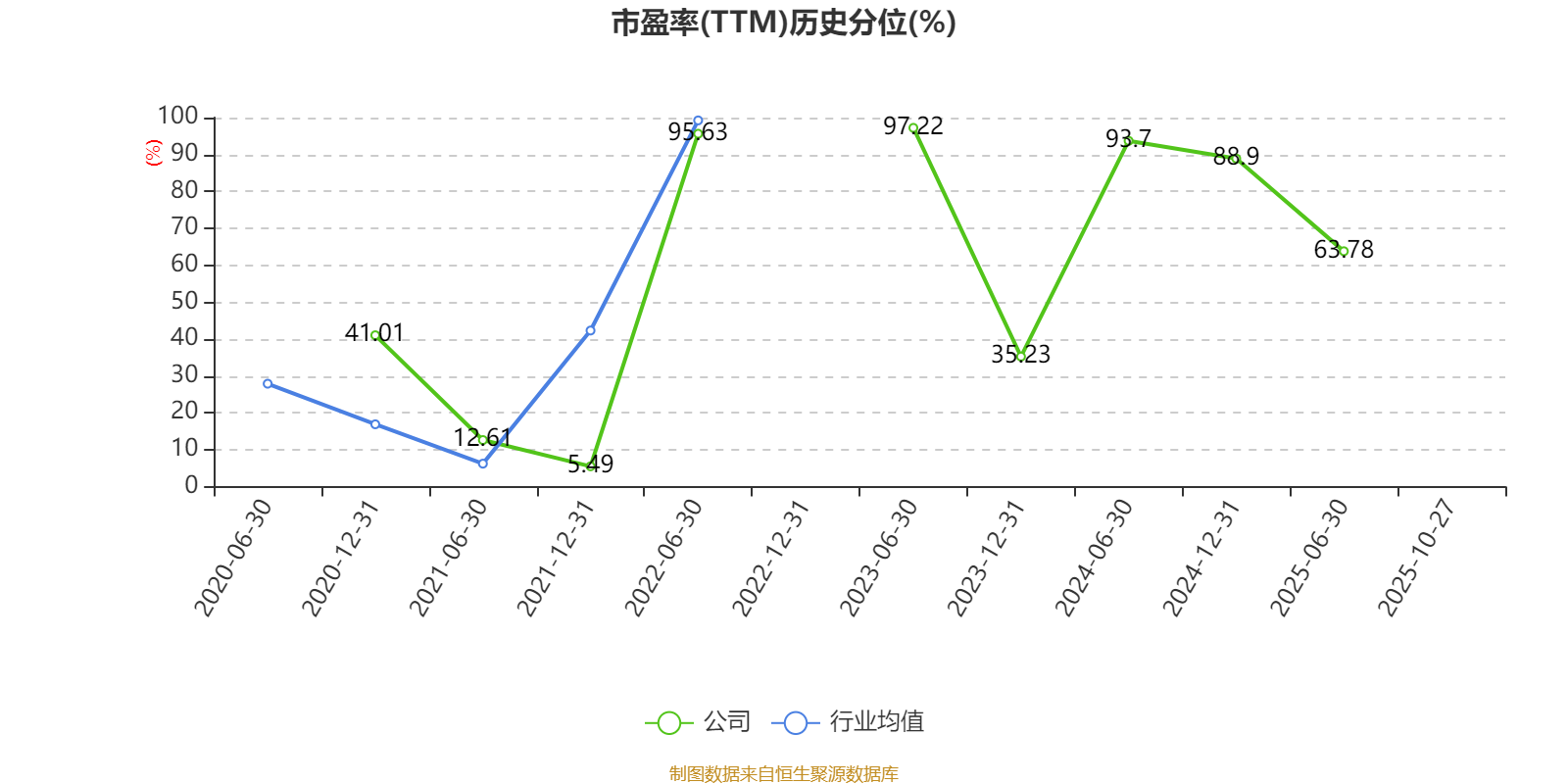 市盈率、市净率为负时,不显示当期分位数,会导致折线图中断。