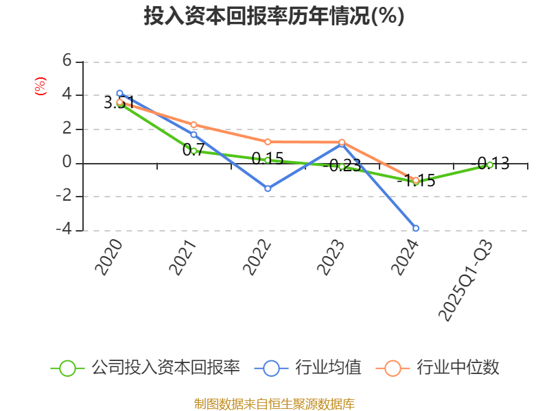 盈利能力方面, 2025年前三季度公司加权平均净资产收益率为0.16%,同比下降1.29个百分点。公司2025年前三季度投入资本回报率为-0.13%,较上年同期下降1.13个百分点。