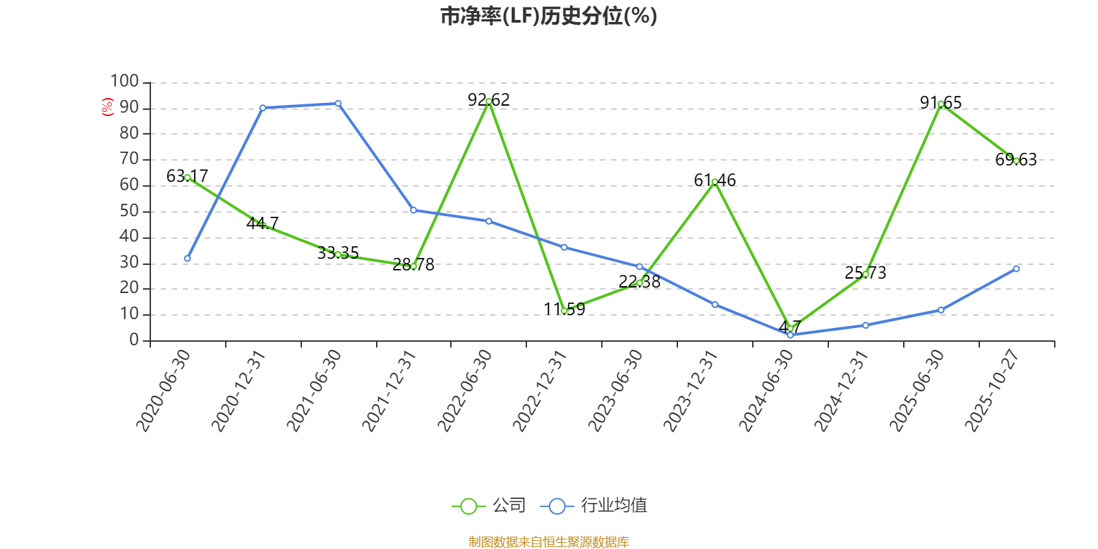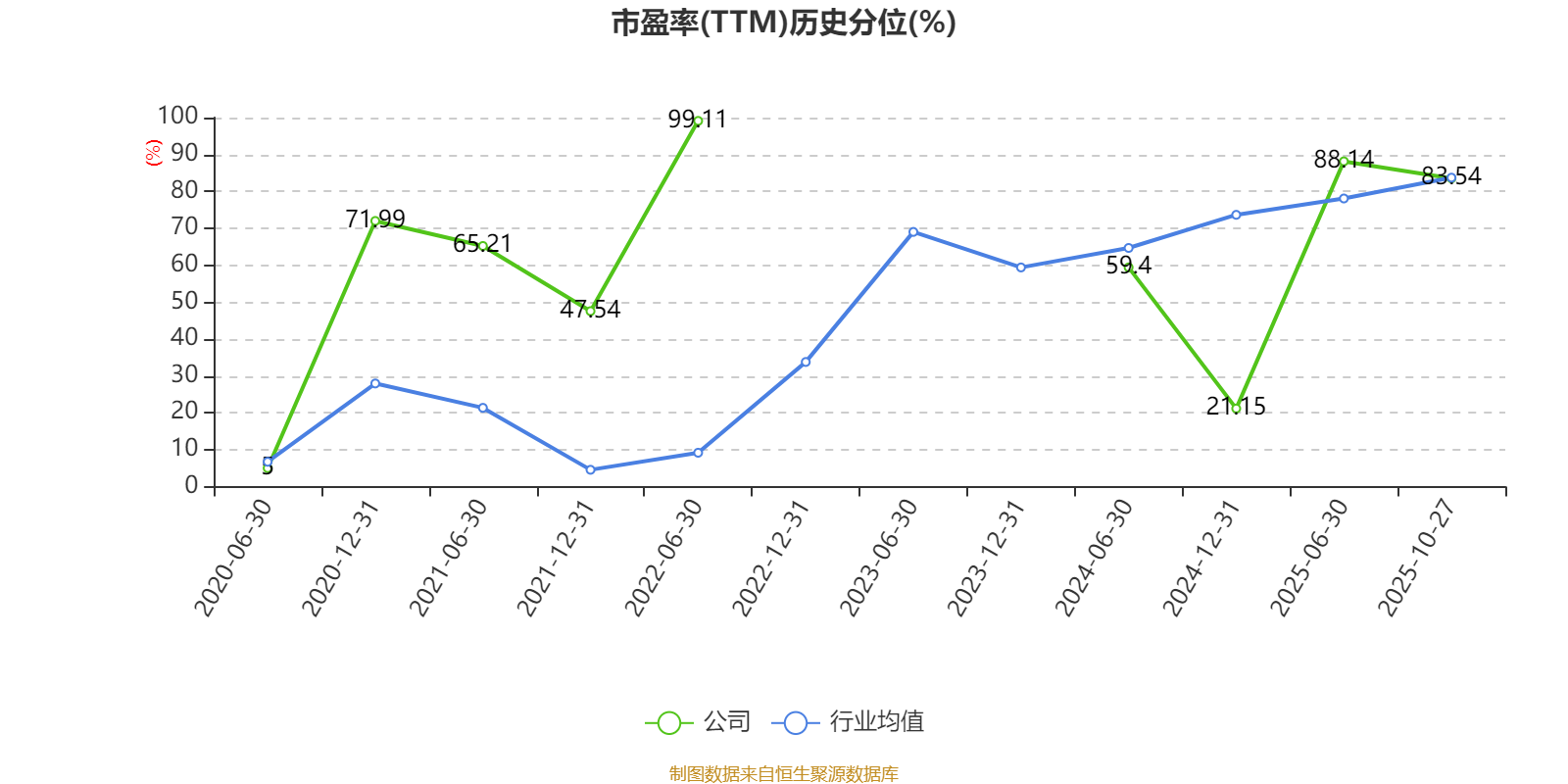 市盈率、市净率为负时,不显示当期分位数,会导致折线图中断。