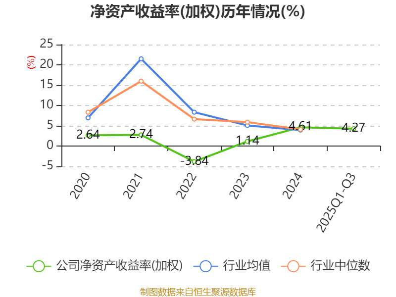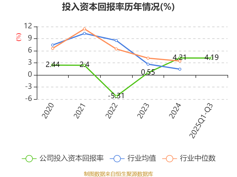 盈利能力方面, 2025年前三季度公司加权平均净资产收益率为4.27%,同比下降0.35个百分点。公司2025年前三季度投入资本回报率为4.19%,较上年同期下降0.05个百分点。