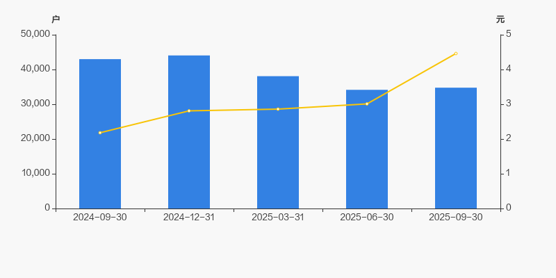 2024年9月30日至今,公司股东户数显著下降,区间跌幅为19.11%。2024年9月30日至2025年9月30日区间股价上涨104.59%。