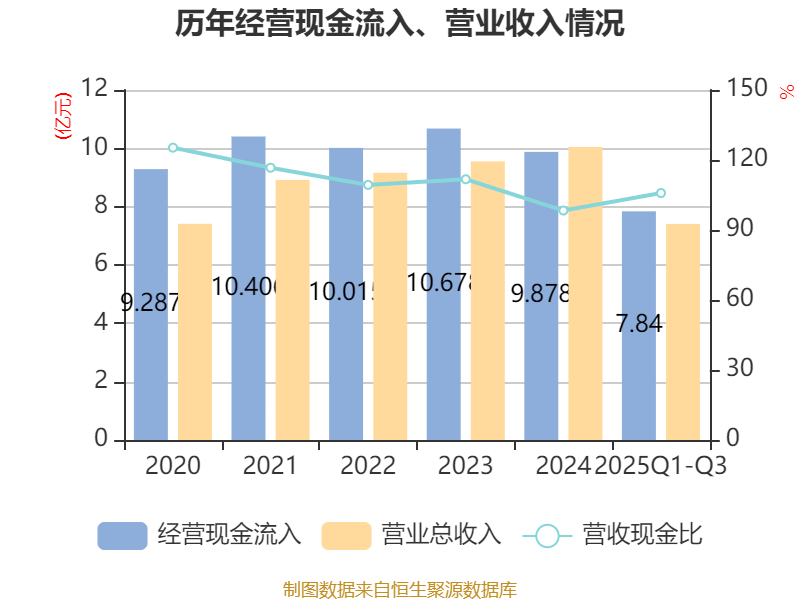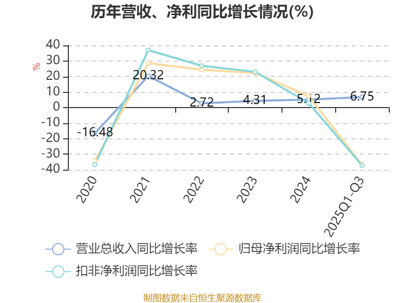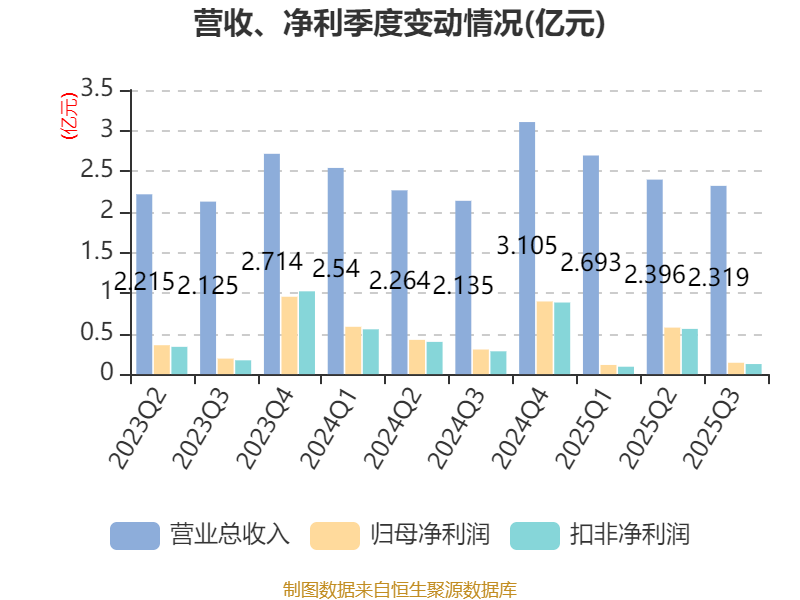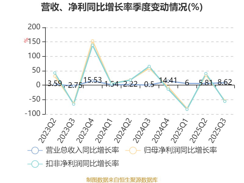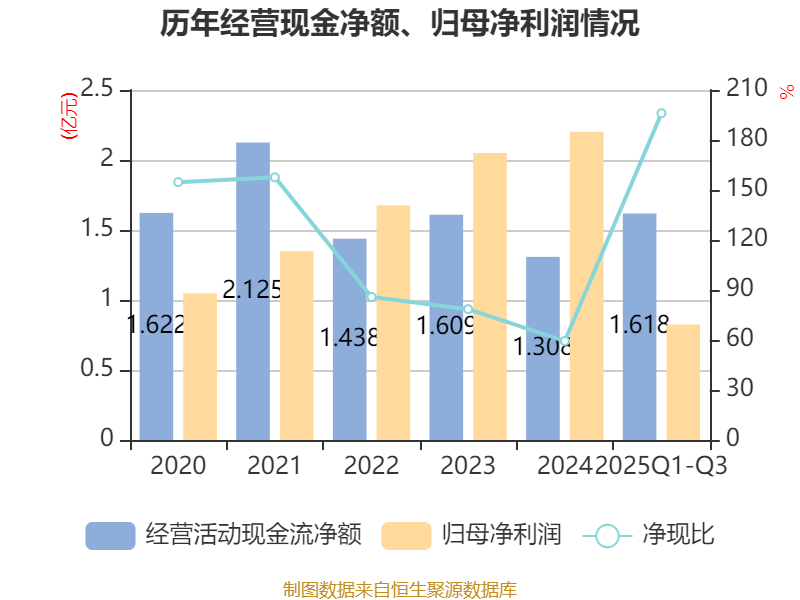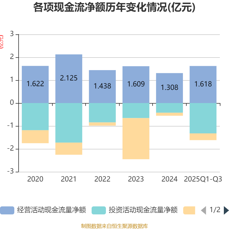2025年前三季度,公司经营活动现金流净额为1.62亿元,同比增长16.42%;筹资活动现金流净额-2941.9万元,同比减少1543.37万元;投资活动现金流净额-1.33亿元,上年同期为-1.14亿元。