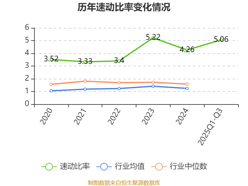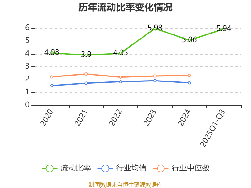 2025年前三季度,公司流动比率为5.94,速动比率为5.06。