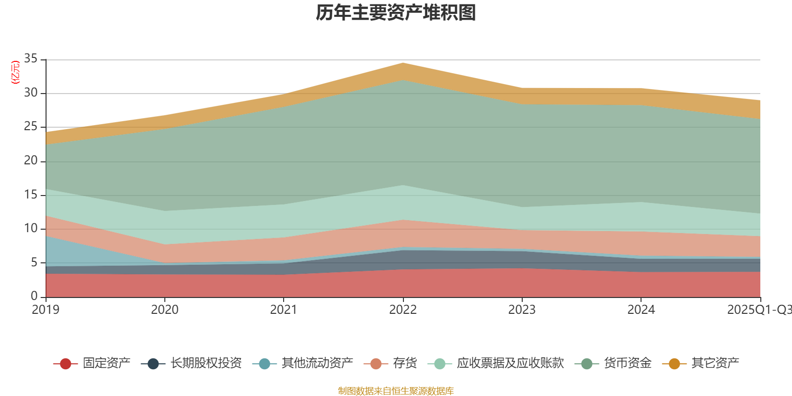 资产重大变化方面,截至2025年三季度末,公司其他非流动金融资产占公司总资产的3.45%,上年末为0;应收票据及应收账款较上年末减少22.99%,占公司总资产比重下降2.58个百分点;货币资金较上年末减少2.33%,占公司总资产比重上升1.69个百分点;在建工程合计较上年末减少81.95%,占公司总资产比重下降1.38个百分点。