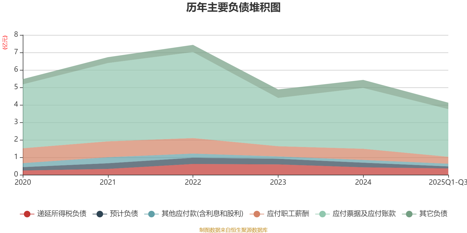 负债重大变化方面,截至2025年三季度末,公司应付票据及应付账款较上年末减少21.61%,占公司总资产比重下降1.91个百分点;应付职工薪酬较上年末减少38.22%,占公司总资产比重下降0.71个百分点;预计负债较上年末减少56.16%,占公司总资产比重下降0.46个百分点;递延所得税负债较上年末减少15.66%,占公司总资产比重下降0.14个百分点。
