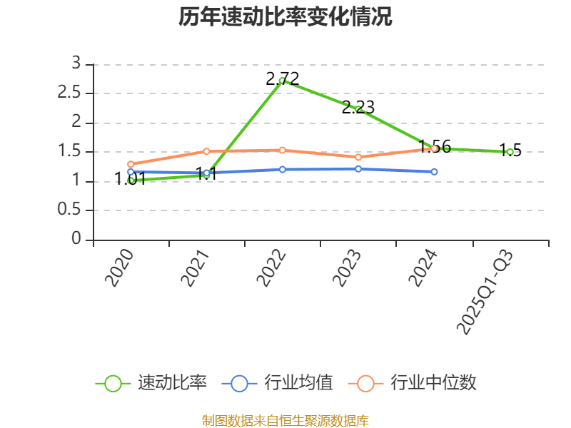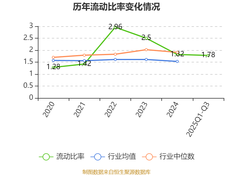 2025年前三季度,公司流动比率为1.78,速动比率为1.5。