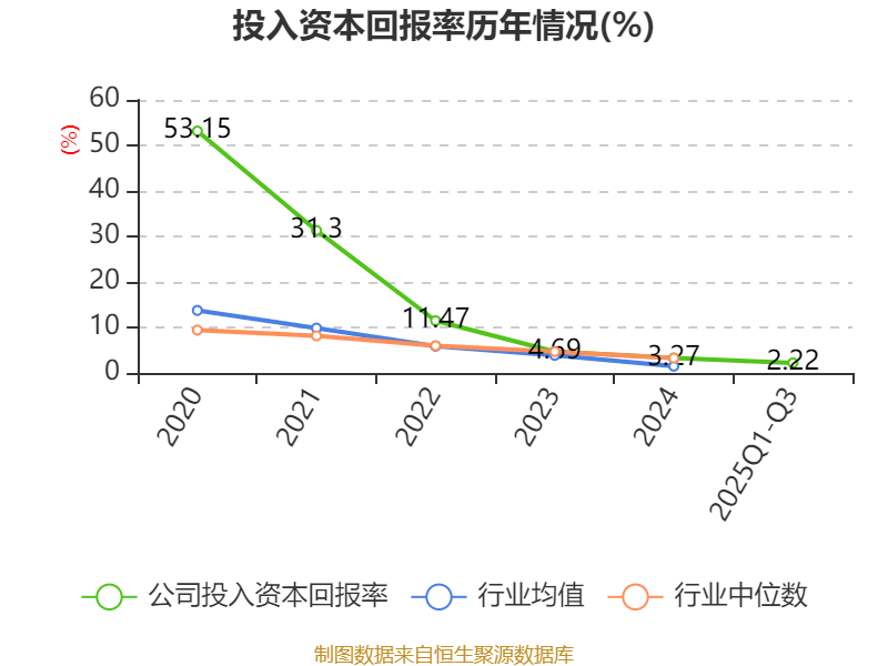 盈利能力方面, 2025年前三季度公司加权平均净资产收益率为2.49%,同比下降0.29个百分点。公司2025年前三季度投入资本回报率为2.22%,较上年同期下降0.28个百分点。