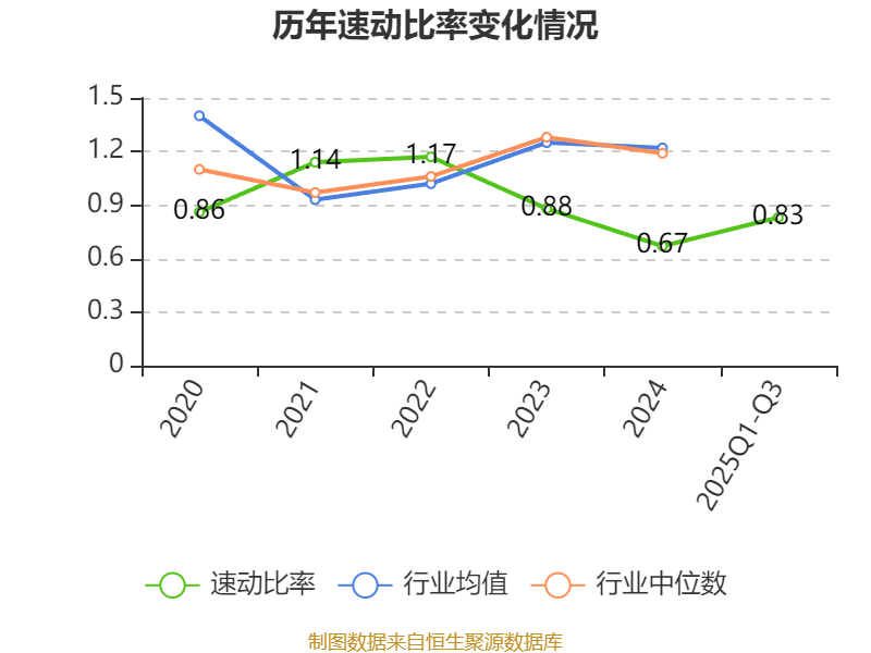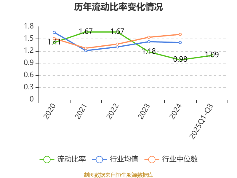 2025年前三季度,公司流动比率为1.09,速动比率为0.83。