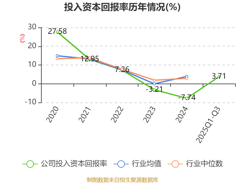 盈利能力方面, 2025年前三季度公司加权平均净资产收益率为4.52%,同比上升6.48个百分点。公司2025年前三季度投入资本回报率为3.71%,较上年同期上升5.89个百分点。