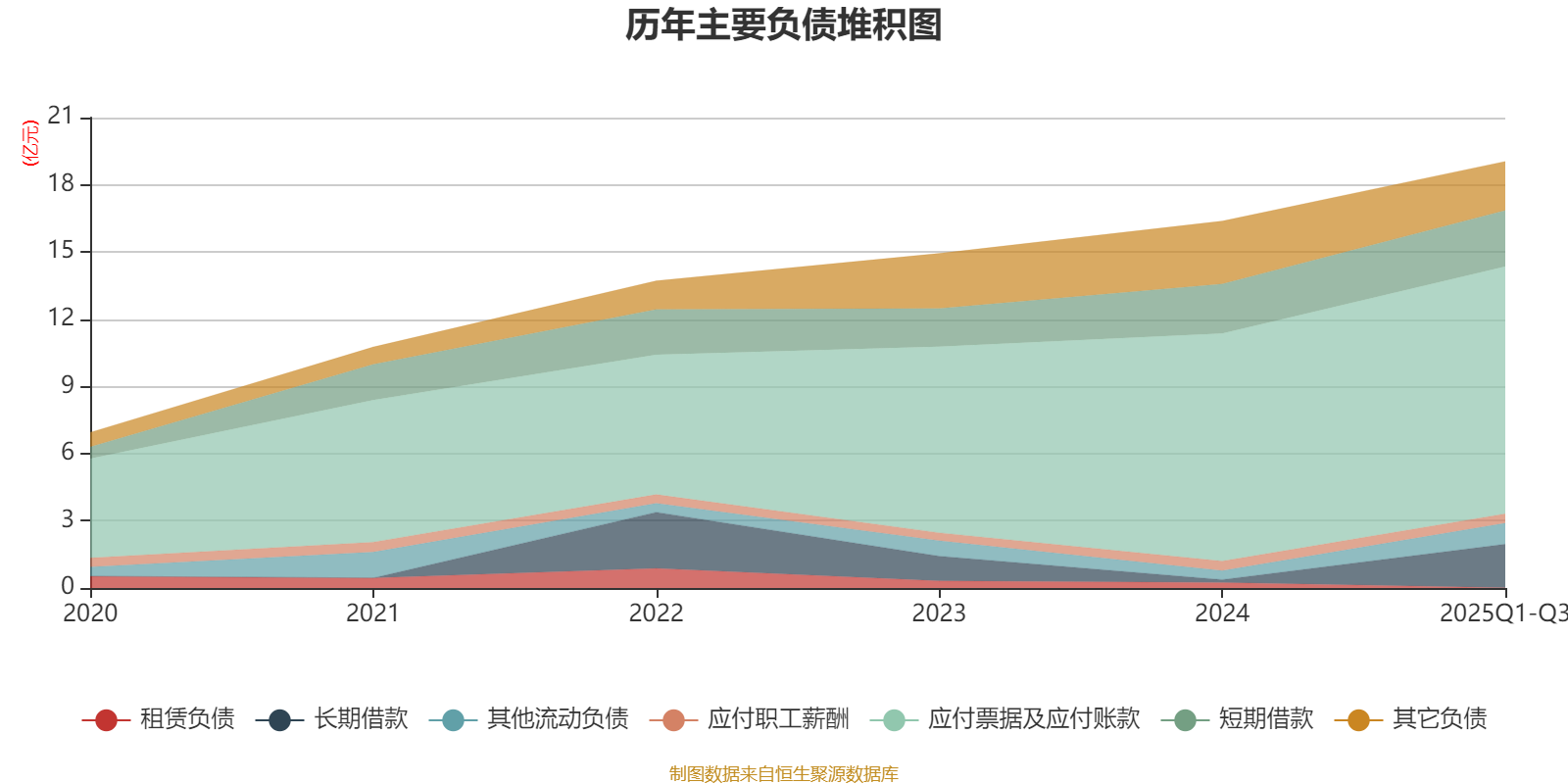 负债重大变化方面,截至2025年三季度末,公司长期借款较上年末增加1434.18%,占公司总资产比重上升6个百分点;其他流动负债较上年末增加134.75%,占公司总资产比重上升1.63个百分点;应付票据及应付账款较上年末增加8.67%,占公司总资产比重下降1.09个百分点;租赁负债较上年末减少95.77%,占公司总资产比重下降0.88个百分点。