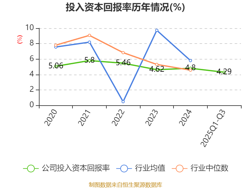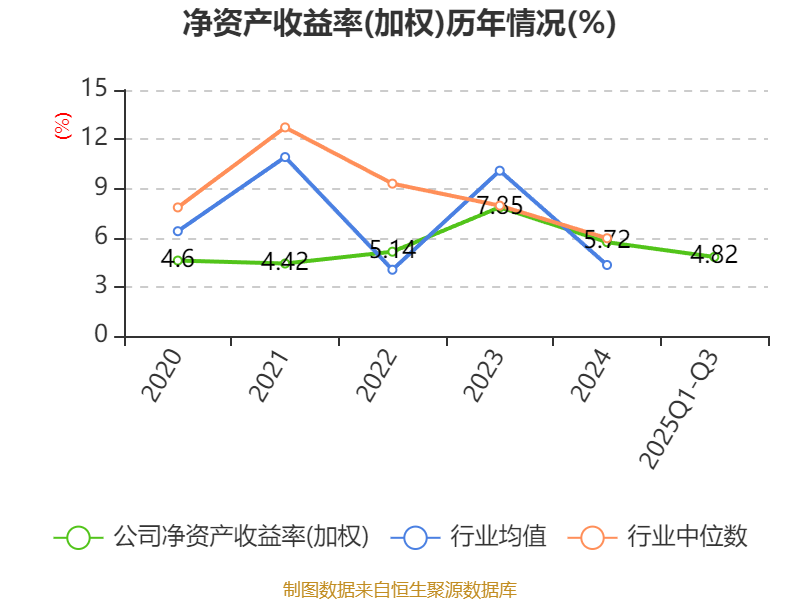 盈利能力方面, 2025年前三季度公司加权平均净资产收益率为4.82%,同比上升1.11个百分点。公司2025年前三季度投入资本回报率为4.29%,较上年同期上升1.2个百分点。