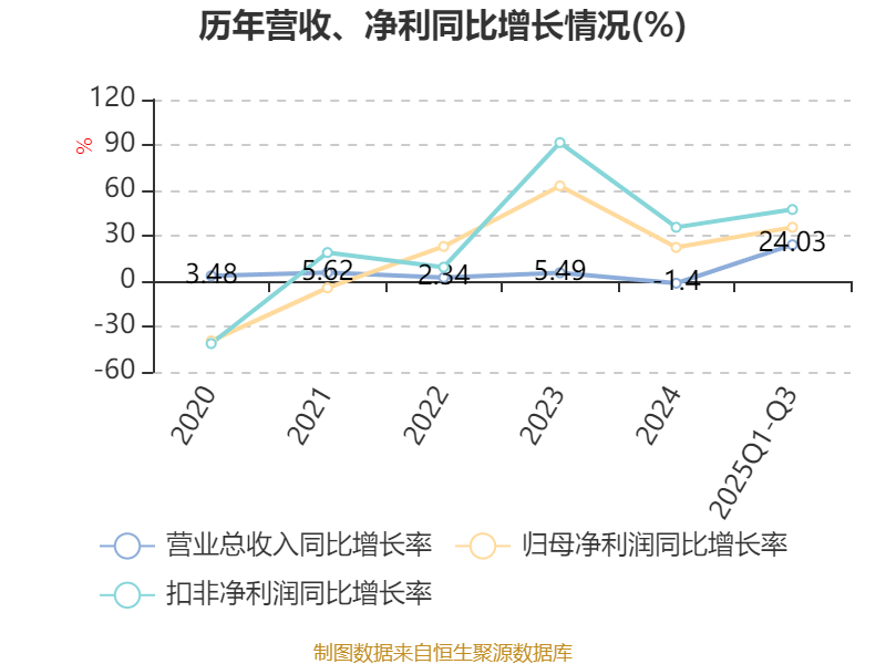 2025年前三季度,公司流动比率为1.48,速动比率为1.43。