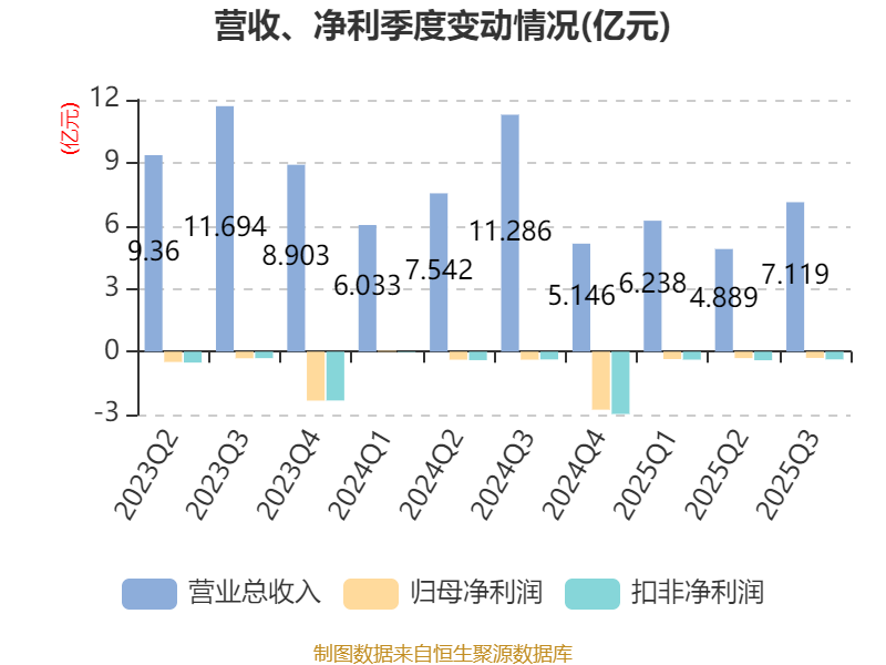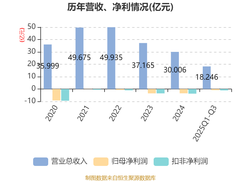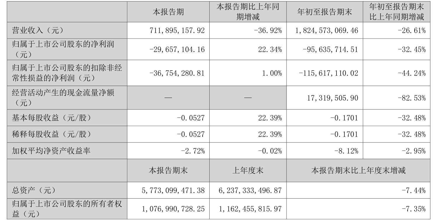 中证智能财讯龙洲股份(002682)10月28日披露2025年第三季度报告。前三季度公司实现营业总收入18.25亿元,同比下降26.61%;归母净利润亏损9563.57万元,上年同期亏损7220.37万元;扣非净利润亏损1.16亿元,上年同期亏损8015.84万元;经营活动产生的现金流量净额为1731.95万元,同比下降82.53%;报告期内,龙洲股份基本每股收益为-0.1701元,加权平均净资产收益率为-8.12%。