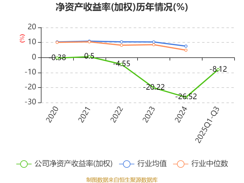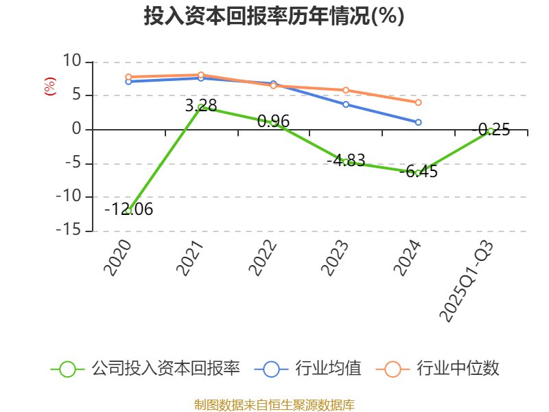 盈利能力方面, 2025年前三季度公司加权平均净资产收益率为-8.12%,同比下降2.95个百分点。公司2025年前三季度投入资本回报率为-0.25%,较上年同期下降0.72个百分点。