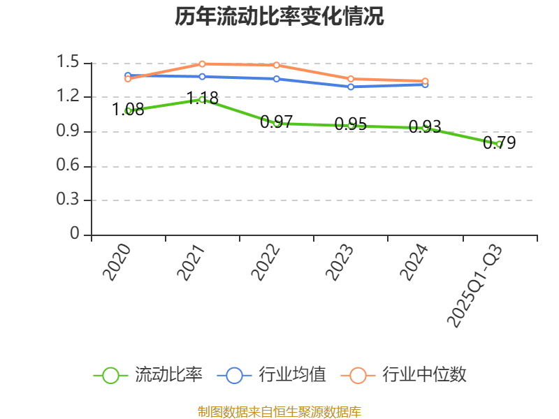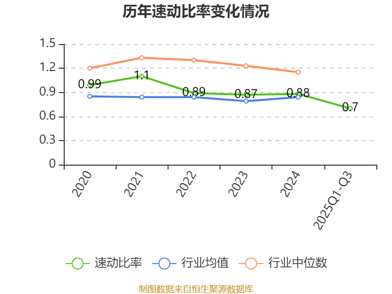 2025年前三季度,公司流动比率为0.79,速动比率为0.7。