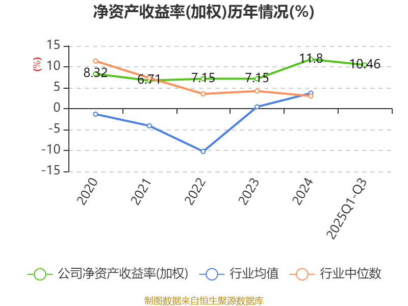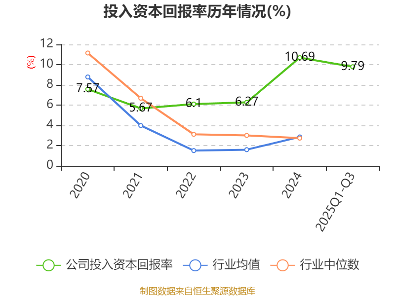盈利能力方面, 2025年前三季度公司加权平均净资产收益率为10.46%,同比上升0.54个百分点。公司2025年前三季度投入资本回报率为9.79%,较上年同期上升0.69个百分点。