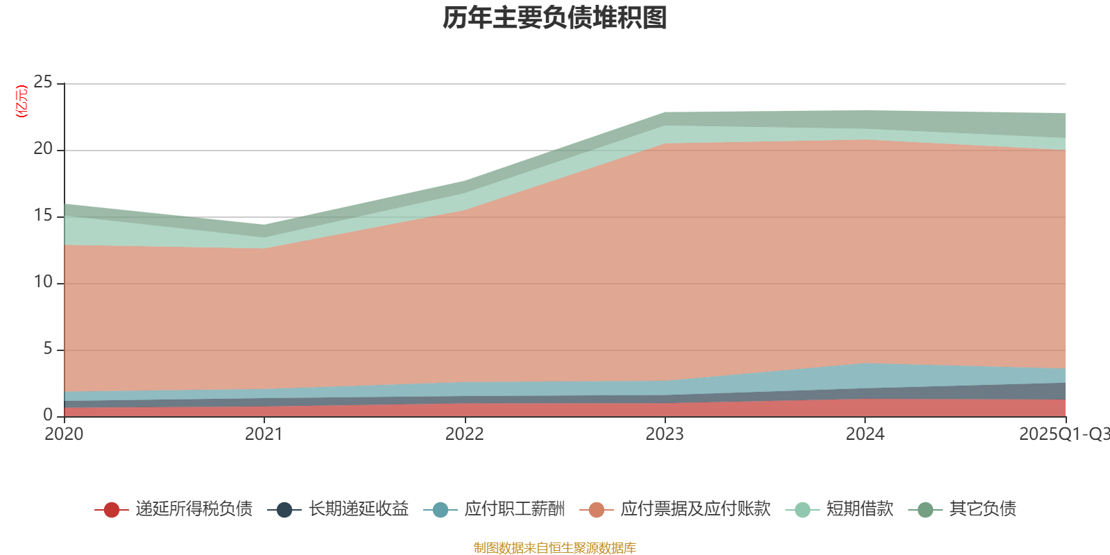 负债重大变化方面,截至2025年三季度末,公司应付票据及应付账款较上年末减少2.2%,占公司总资产比重下降0.93个百分点;应付职工薪酬较上年末减少43.4%,占公司总资产比重下降0.74个百分点;长期递延收益较上年末增加57.92%,占公司总资产比重上升0.35个百分点;应交税费较上年末增加26.5%,占公司总资产比重上升0.16个百分点。