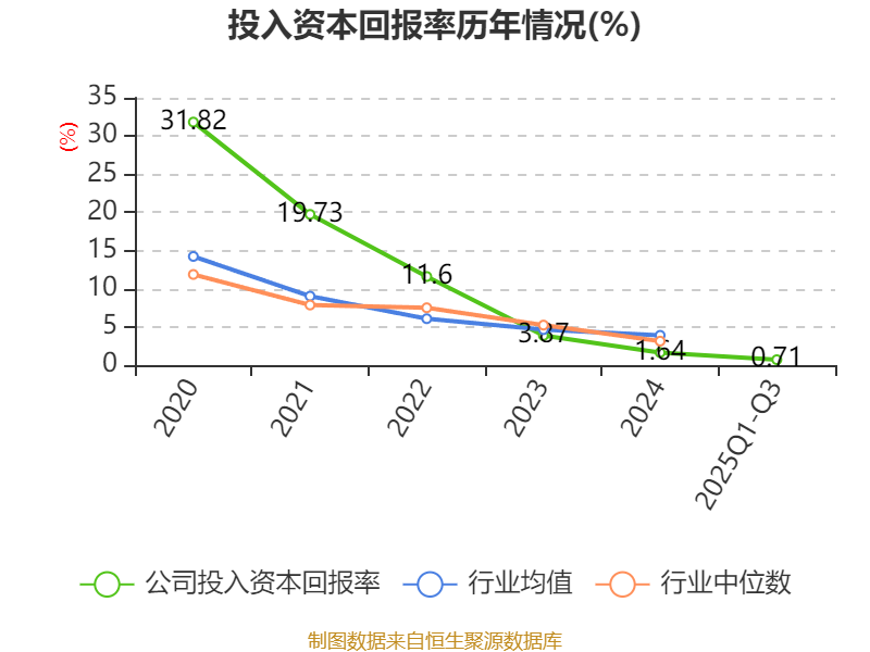 盈利能力方面, 2025年前三季度公司加权平均净资产收益率为0.99%,同比下降0.68个百分点。公司2025年前三季度投入资本回报率为0.71%,较上年同期下降0.93个百分点。