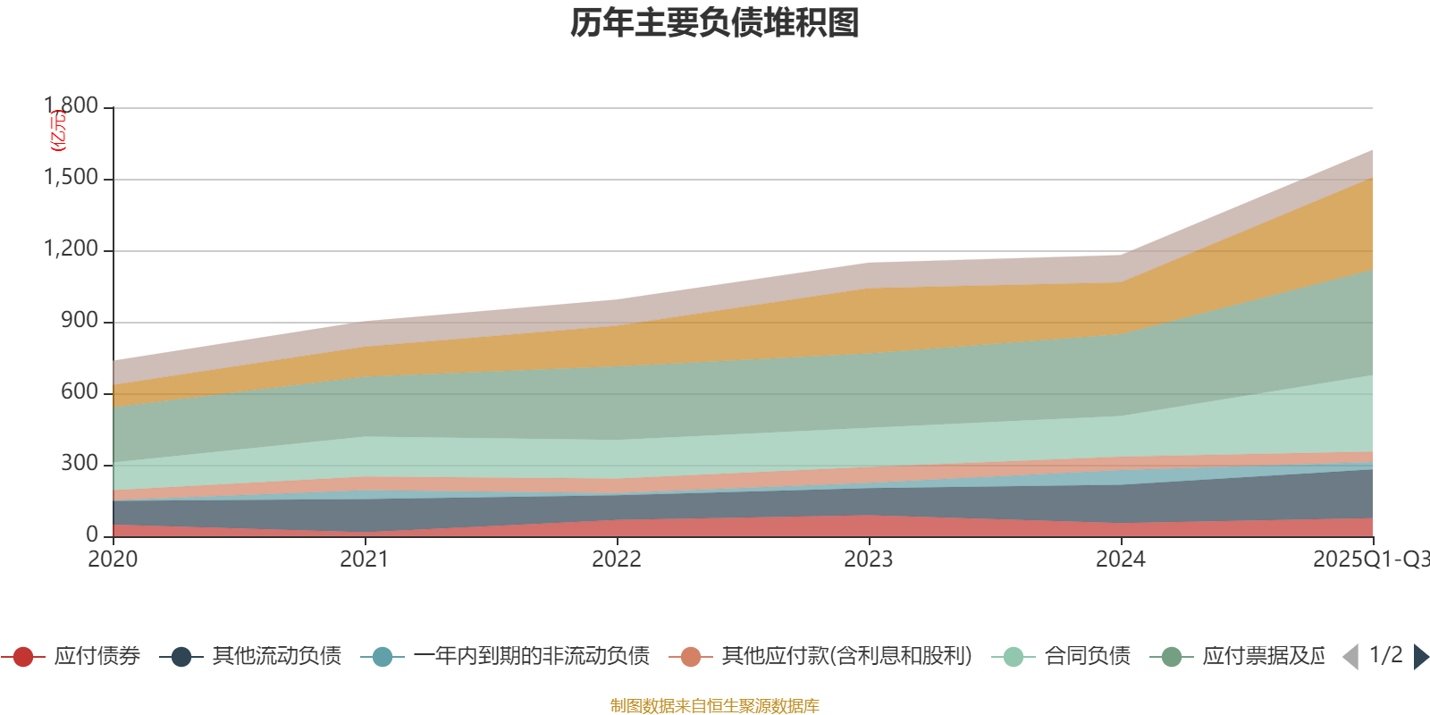 负债重大变化方面,截至2025年三季度末,公司短期借款较上年末增加77.66%,占公司总资产比重上升5.08个百分点;合同负债较上年末增加88.22%,占公司总资产比重上升4.79个百分点;一年内到期的非流动负债较上年末减少48.82%,占公司总资产比重下降2.1个百分点;其他应付款(含利息和股利)较上年末减少23.48%,占公司总资产比重下降1.26个百分点。
