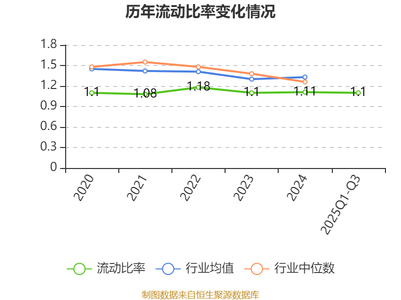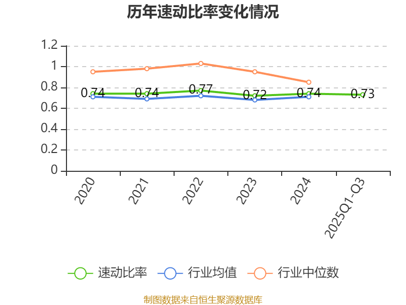 2025年前三季度,公司流动比率为1.1,速动比率为0.73。