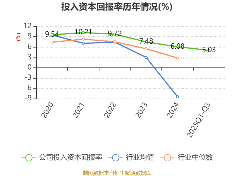 盈利能力方面, 2025年前三季度公司加权平均净资产收益率为7.38%,同比上升1.06个百分点。公司2025年前三季度投入资本回报率为5.03%,较上年同期上升0.38个百分点。
