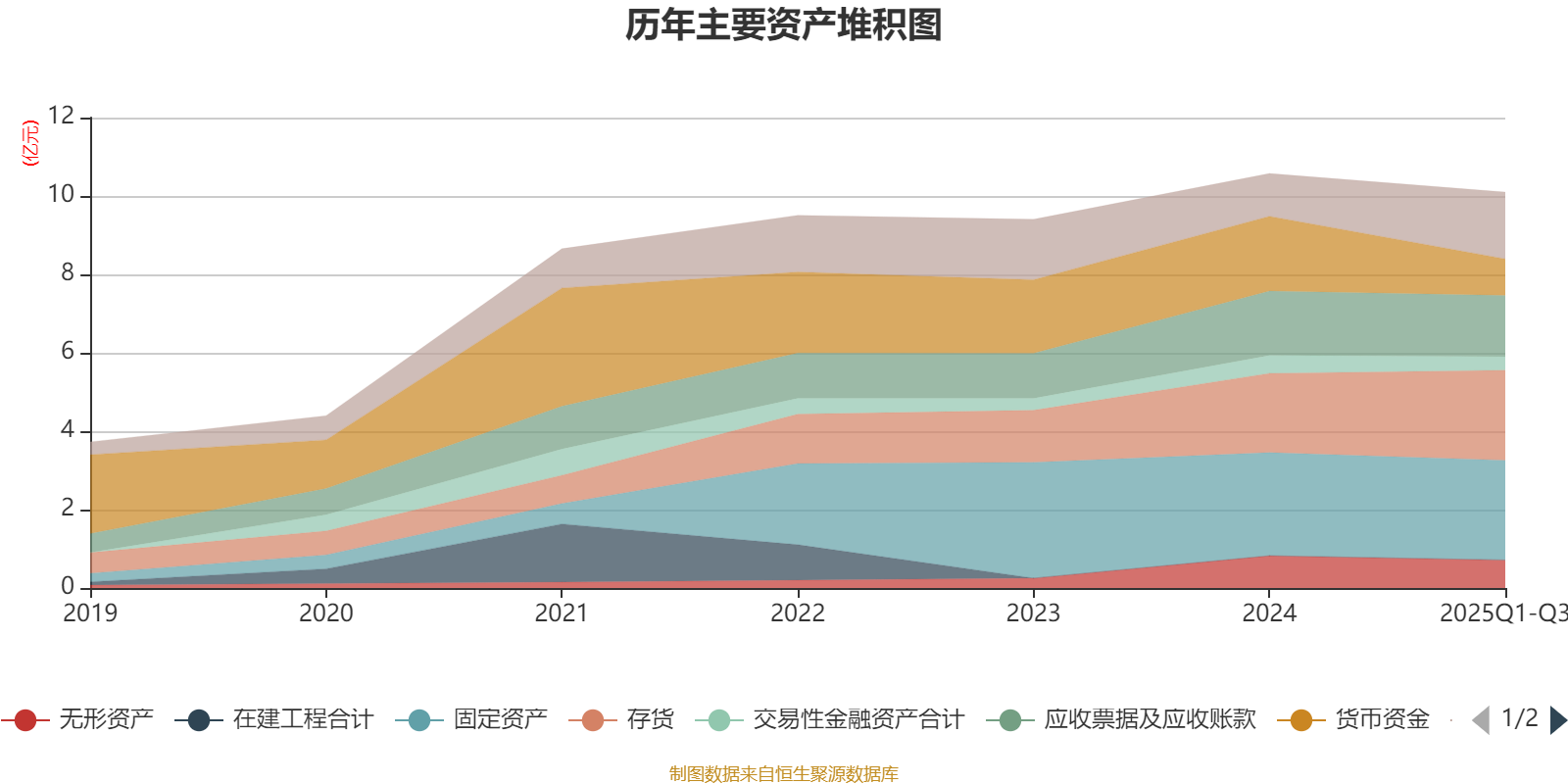 资产重大变化方面,截至2025年三季度末,公司货币资金较上年末减少50.98%,占公司总资产比重下降8.79个百分点;存货较上年末增加13.5%,占公司总资产比重上升3.6个百分点;开发支出较上年末增加483.47%,占公司总资产比重上升3.23个百分点;使用权资产较上年末增加200.37%,占公司总资产比重上升1.03个百分点。
