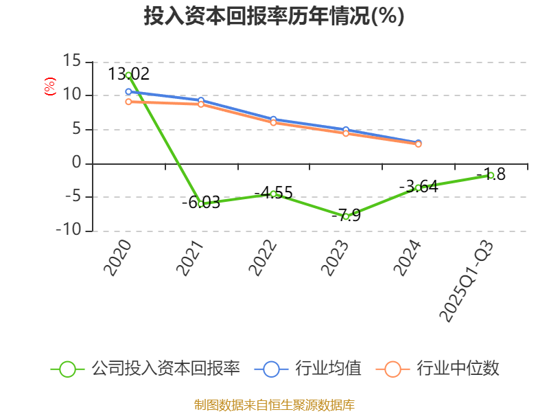 盈利能力方面, 2025年前三季度公司加权平均净资产收益率为-3.51%,同比上升5.72个百分点。公司2025年前三季度投入资本回报率为-1.8%,较上年同期上升4.83个百分点。