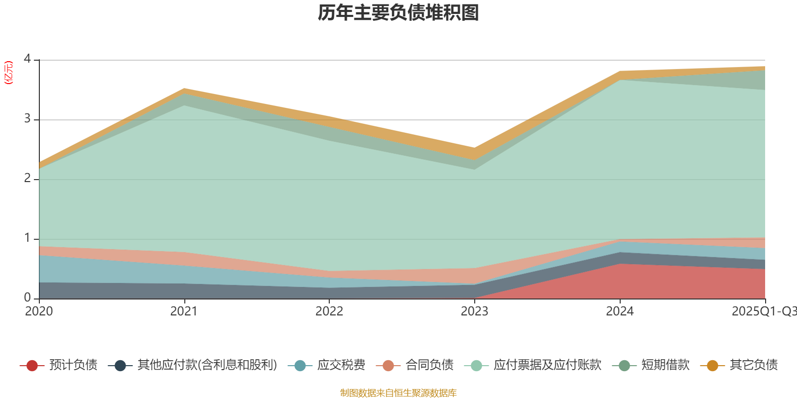 负债重大变化方面,截至2025年三季度末,公司短期借款占公司总资产的2.02%,上年末为0;应付票据及应付账款较上年末减少7.4%,占公司总资产比重下降1.33个百分点;合同负债较上年末增加363.7%,占公司总资产比重上升0.86个百分点;预计负债较上年末减少15.59%,占公司总资产比重下降0.58个百分点。