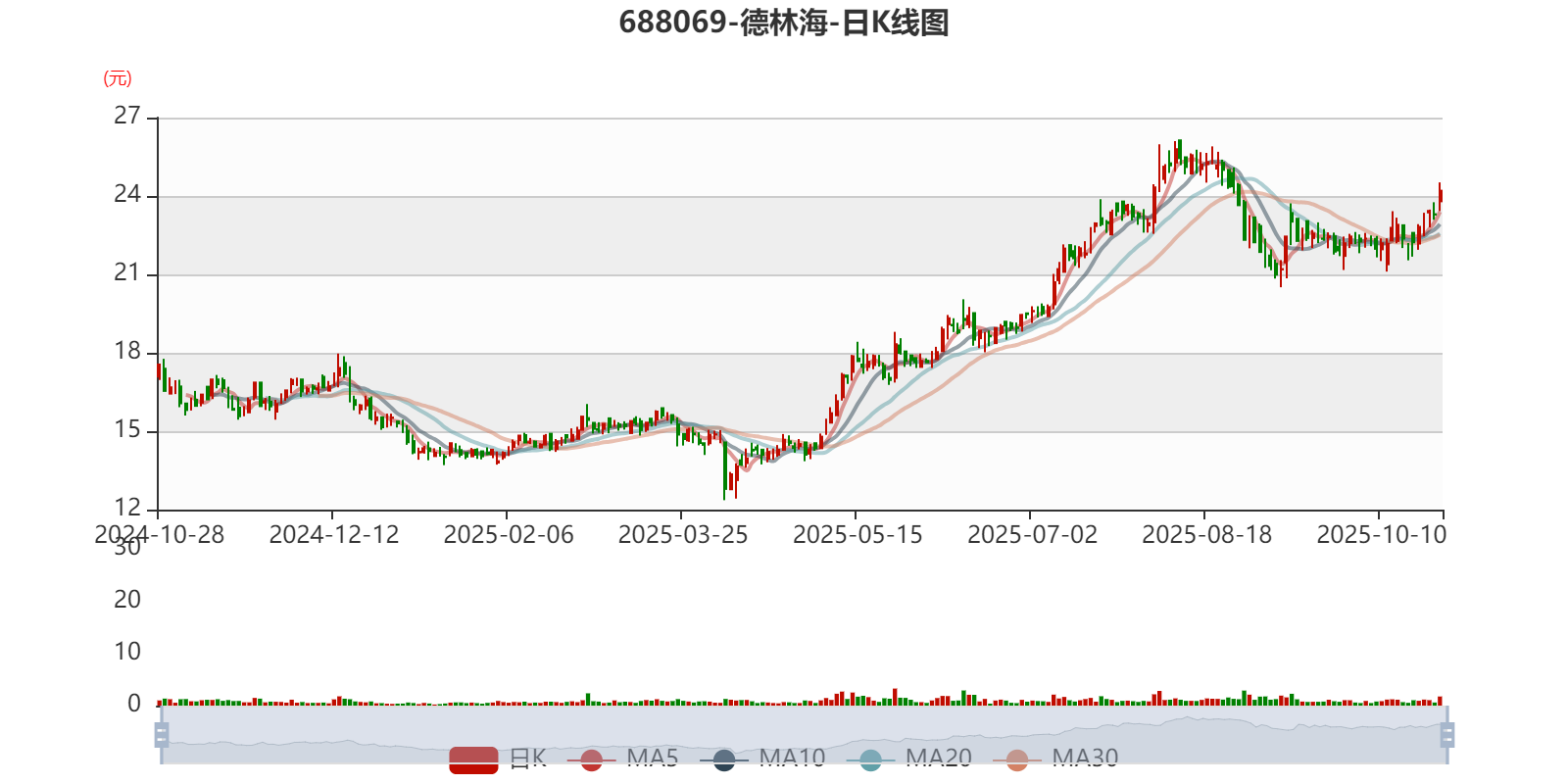 以10月27日收盘价计算,德林海目前市盈率(TTM)约为-39.8倍,市净率(LF)约2.2倍,市销率(TTM)约6.2倍。