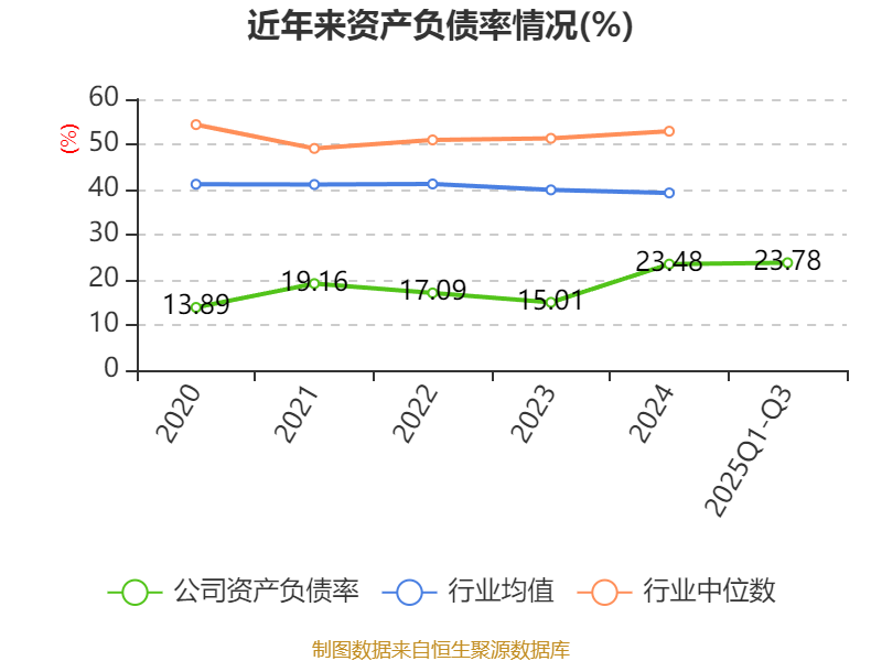 2025年前三季度,公司流动比率为3.85,速动比率为3.66。