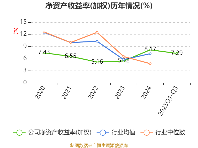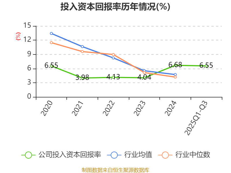 盈利能力方面, 2025年前三季度公司加权平均净资产收益率为7.29%,同比上升1.98个百分点。公司2025年前三季度投入资本回报率为6.55%,较上年同期上升2.3个百分点。