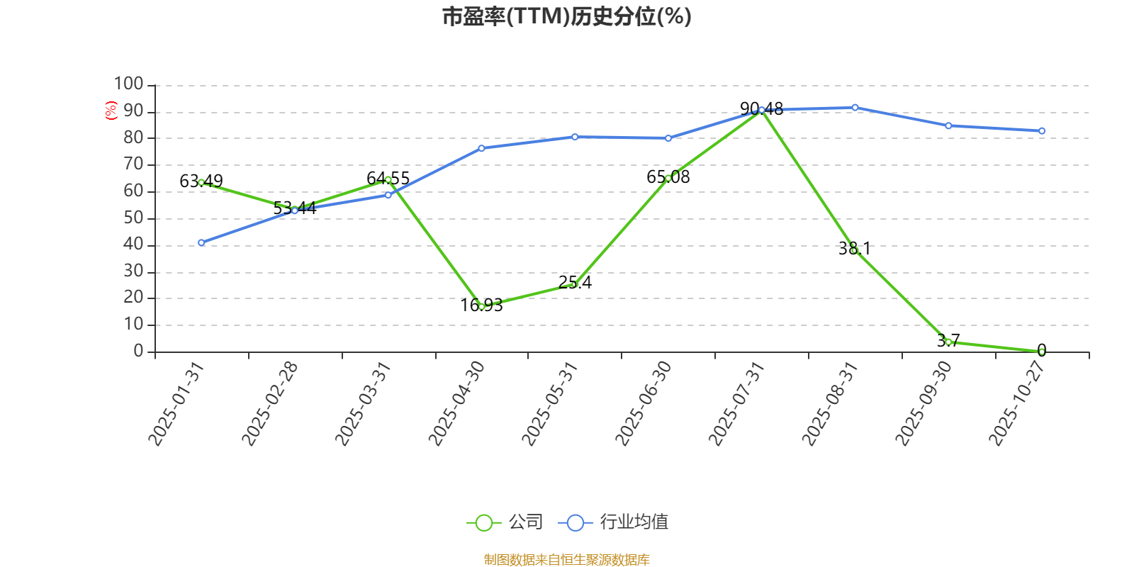 市盈率、市净率为负时,不显示当期分位数,会导致折线图中断。