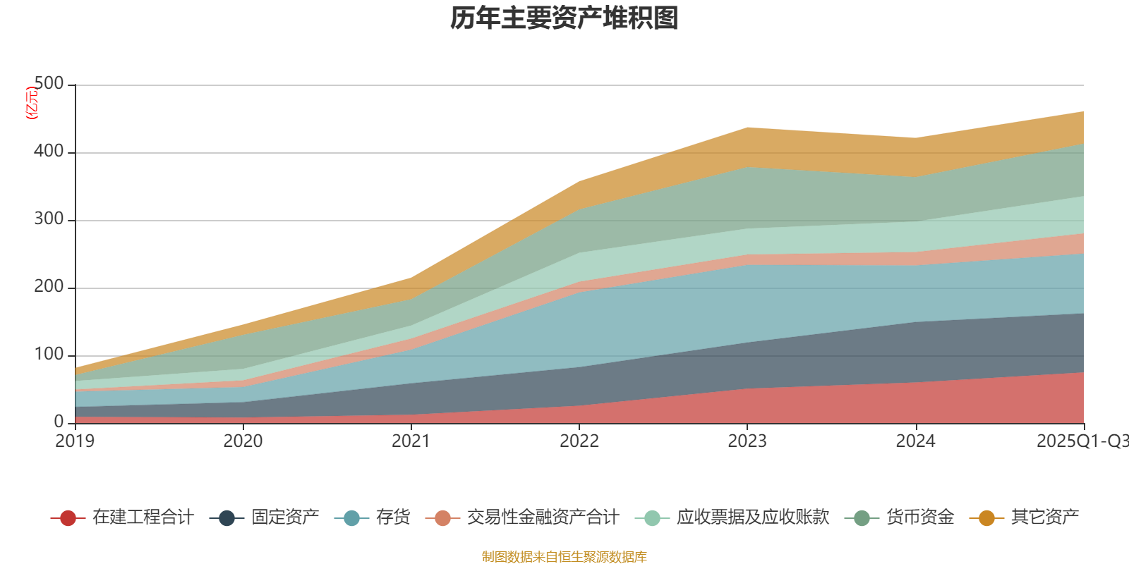 资产重大变化方面,截至2025年三季度末,公司固定资产较上年末减少2.36%,占公司总资产比重下降2.27个百分点;其他非流动资产较上年末减少71.26%,占公司总资产比重下降2.16个百分点;在建工程合计较上年末增加25.16%,占公司总资产比重上升2.05个百分点;交易性金融资产合计较上年末增加50.94%,占公司总资产比重上升1.79个百分点。